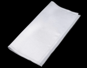 Barva kapesníčku je lesklá bíla.